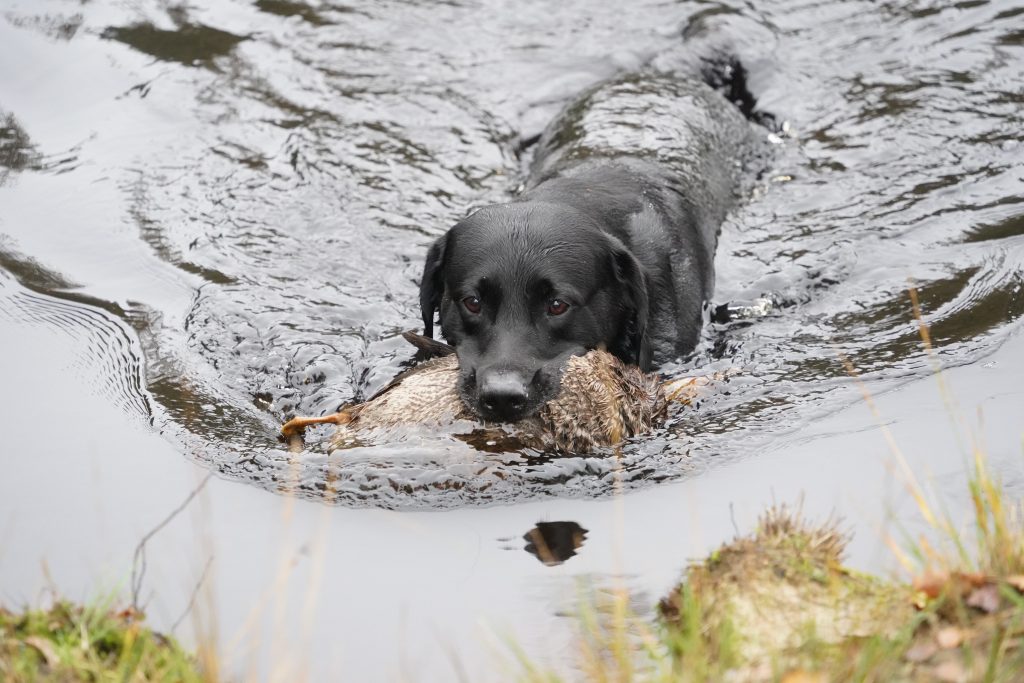 Mit Sea ‚N‘ Land Berta eine passionierte Chesapeake Bay Retriever Hündin hatte ich zum kleinen Vollgebrauchshund einen Spezialisten aus dem Retrieverlager, der am ehesten noch zum Vollgebrauchshund taugen sollte. Neben zuverlässigen Apport bei der Entenjagd konnten nicht nur Nachsuchen auf Schalenwild geleistet werden, als Backup beim Durchgehen auf der Drückjagd war sie auch voll zu gebrauchen. Wie langsam aber sicher die jagdliche Rente für Berta anstand war die Frage nach der Nachfolge zu klären. Ein Terrier war im Haus, aber ein vollwertiger Apporteur musste her. Mittlerweile selber Anfang 40 musste ich auch nicht wirklich jede Woche als Durchgeher in unwegsamen Gelände meine Erfüllung finden. Bei eher triebigen Hunderassen wie Chessie und Terrier wäre etwas gelasseneres sicher auch nicht schlecht. Anne liebäugelte immer schon mit dem Thema Schulhund, so dass die Wahl „Labrador Retriever“ auf der Hand lag, zumal mir die retrievertypische Arbeit mit Berta Spaß machte. Die zukünftige Hündin sollte nicht nur auf dem Papier die jagdlichen Prüfungen stehen haben, sondern wirklich aus einer klassischen Arbeitslinie stammen. Die Frage der Auslastung stand immer noch im Raum. Mit etwas Phantasie sieht man immer noch die Potentiale für das Niederwild und das Arbeitsfeld der Retriever im Sauerland. Mit Flüssen, Seen und Teichen gibt es genügend Arbeit auf Wasserwild, zumal Kanadagans und die invasive Nilgans sich auch hier mehr und mehr ausbreiten. Der invasive Waschbär bringt ebenfalls die Fallen- und Raubwildbejagung in den Fokus. Wodurch auch bei uns gesunde Niederwildbestände zu erreichen sind. Zumal viele Praxisbeispiele beim Niederwild gezeigt haben: „Nicht gefressen werden geht vor schöner Wohnen“! Zudem kann der Labrador wunderbar u.a. durch Dummyarbeit nicht nur körperlich, sondern auch im Kopf ausgelastet werden. Die Totsuche auf Schalenwild kann er auch leisten, zudem ist Ebba bei fast jedem Ansitz dabei. Rehwild kann mit ihr aus dem Erdsitz auch auf 30 m erlegt werden. Die Standruhe macht es möglich. Aus der Jagdreihe „Farming the Wild“ hab ich die Bilder im Kopf wie in Großbritannien bei der Jagd die Jagdhunde unangeleint bei der Prisch folgen und den Jagderfolg keineswegs schmälern. Und bei den Kalamitätsflächen ist so eine vierbeinige Bergehilfe am Mann gar nicht verkehrt. Aber mit das Wichtigste ist, ein Labrador will dabei sein und das ist auch im Familienalltag uneingeschränkt möglich.